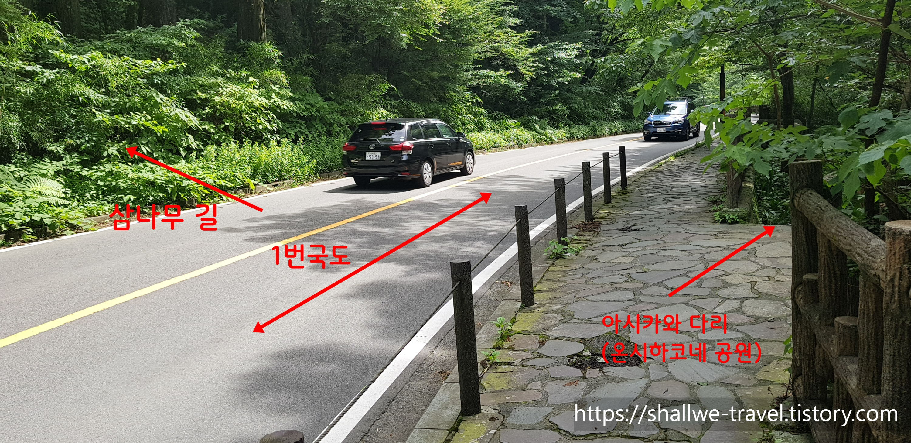 이제 공원을 빠져나와 삼나무 길로 향합니다.