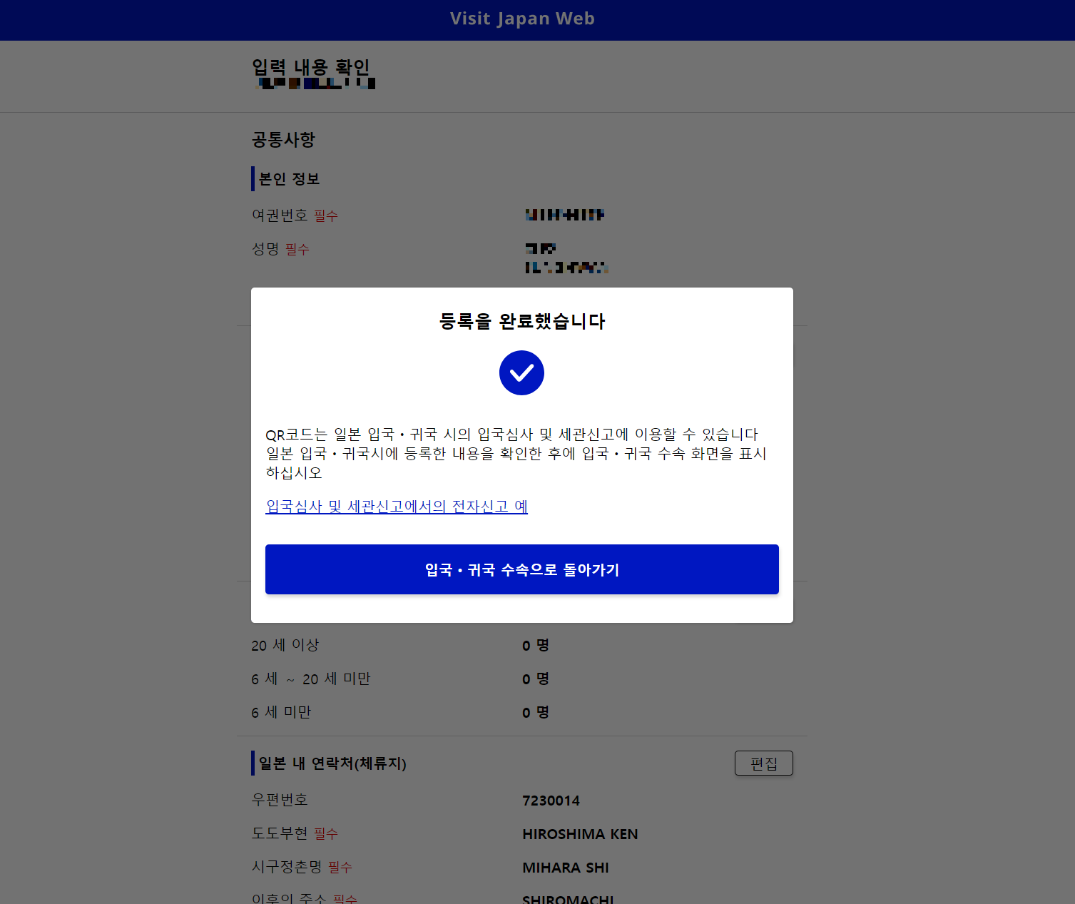 이렇게 해서 그토록 원하던 입국 수속용 QR 코드가 발행되었습니다!!