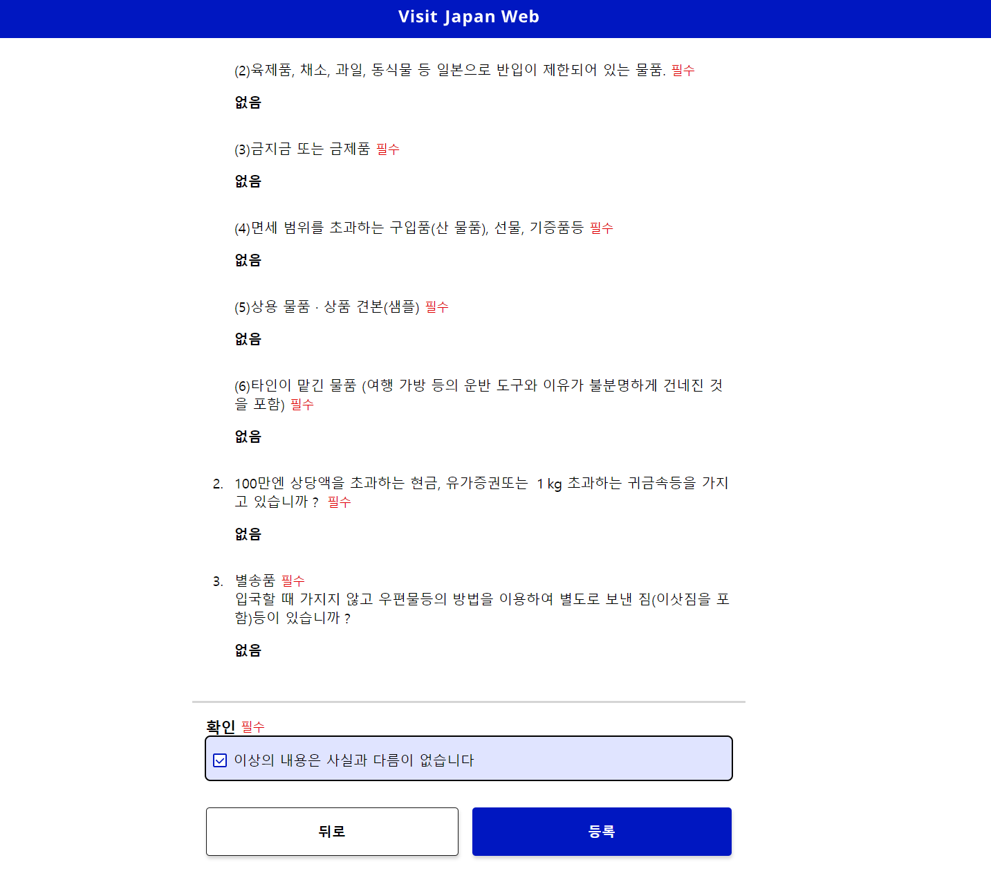 사실 비짓 재팬 웹 하는 이유가 위의 입국신고서랑 별송품 신고서를 기내에서 작성하지 않고 재팬 웹 작성자 전용 줄을 이용해서 빠르게 입국 수속 받으려고 하는건데,