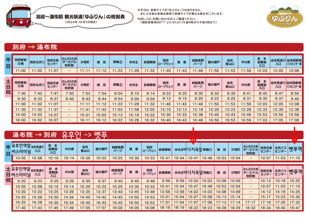 유후인/벳푸 쾌속버스 정보