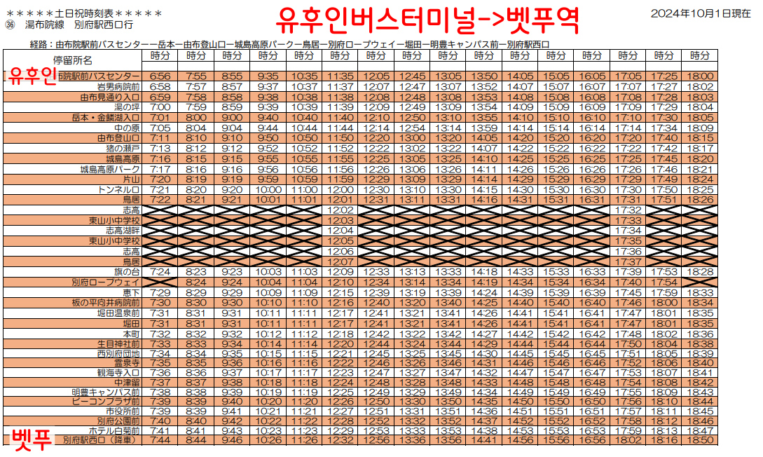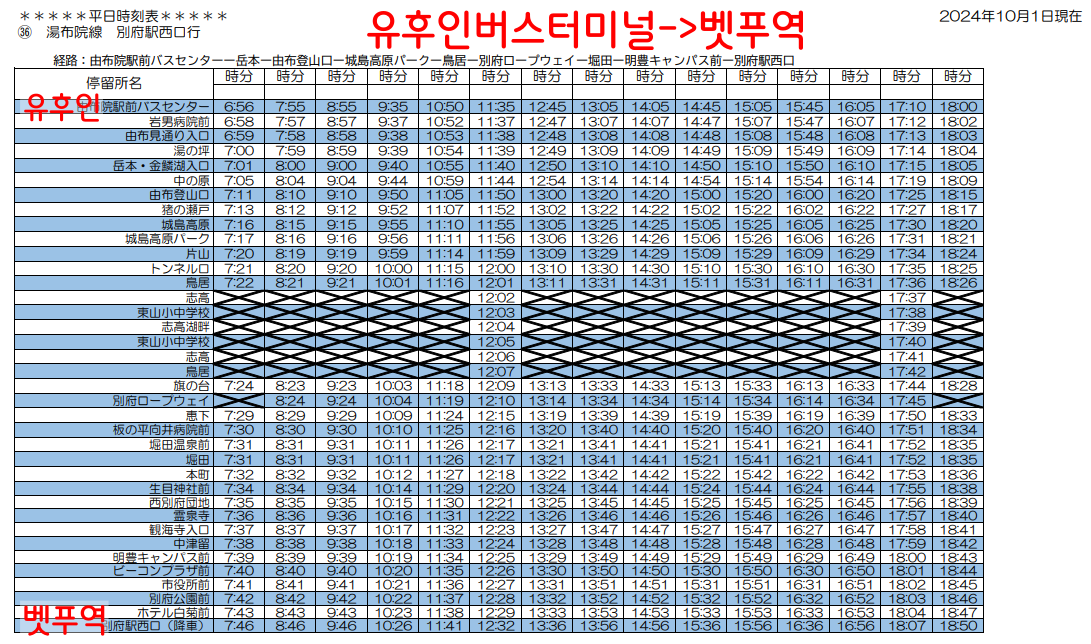 벳푸역 36번 버스 정보