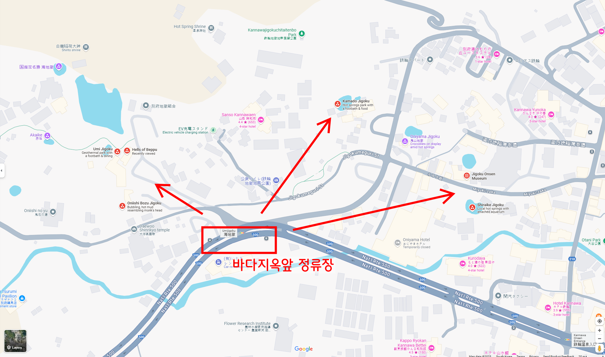 정류장에서 내려 이제 가고 싶은 지옥온천을 둘러보면 됩니다.